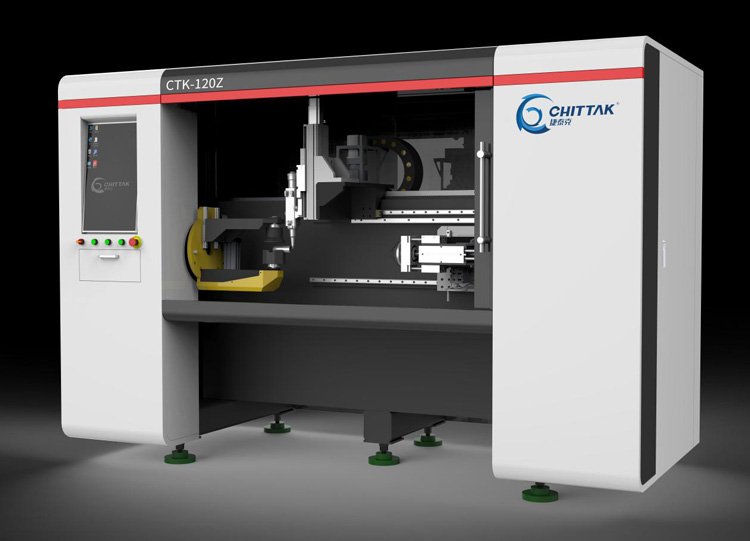 捷(jié)泰克的(de)彎管激光切管機CTK-120Z,管口(kǒu)切割光滑平整,開孔加工精度高,雙切割工位效率更高,相信有(yǒu)實力成為你購買彎管激光切割(gē)設備(bèi)的首選!